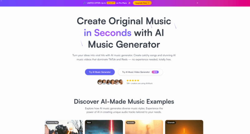 Turn any song into a viral music video with AirMusic AI Music Video Generator. Choose Director Mode for one-click creation or Custom Mode for full creative control.