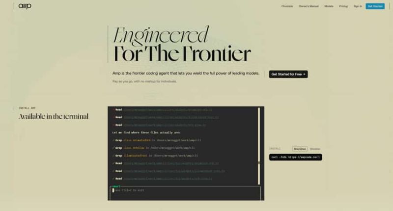 Amp is a frontier coding agent engineered to maximize what’s possible with today’s latest models—autonomous reasoning, comprehensive code editing, and complex task execution.