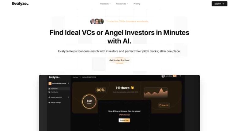 Evalyze helps founders match with investors and perfect their pitch decks; all in one place.