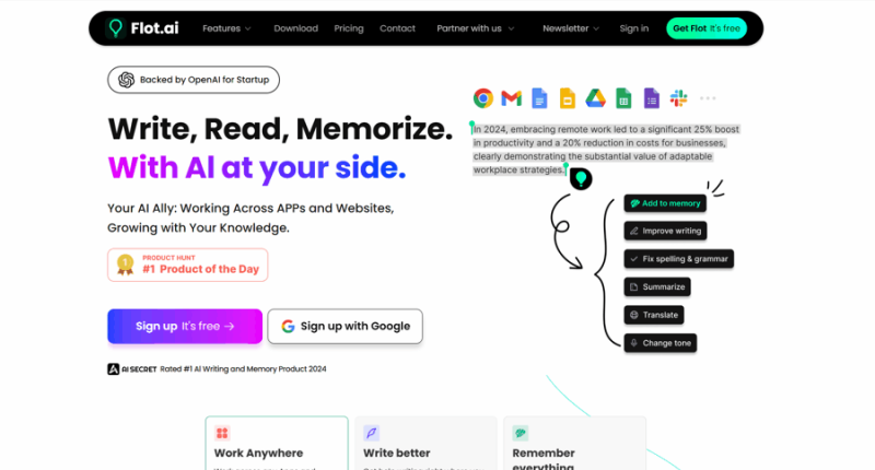 Flot AI is a dynamic tool designed to revolutionize the way we write, read, and memorize information, leveraging advanced artificial intelligence.