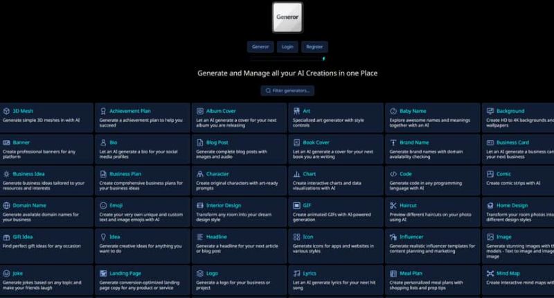 Generor is an all-in-one platform for generating almost anything with AI. It enables users to collaborate and build upon each other's creations mixing ideas and different AI models to create unique content.