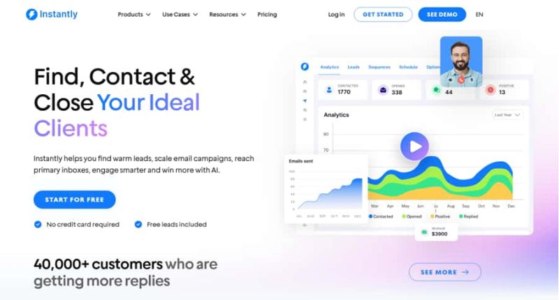 Instantly helps you find warm leads, scale email campaigns, reach primary inboxes, engage smarter and win more with AI.