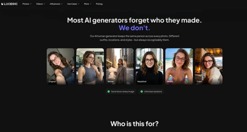 Train AI on your face or design a fictional person from scratch. Then generate unlimited photos and videos in any style you can imagine.