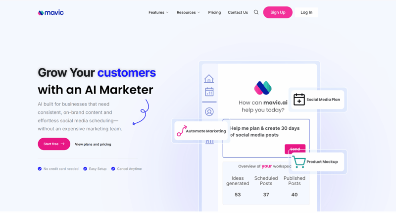 Unlike generic AI tools, Mavic focuses on brand-specific execution, creating campaign strategies, messaging, and designs tailored to your industry.