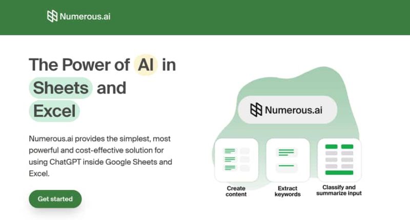 Numerous.ai is an AI-powered spreadsheet plugin that integrates ChatGPT functionality into Google Sheets and Excel, offering a simple and cost-effective solution for AI-assisted data processing and content creation.