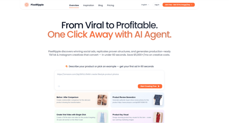 PixelRipple is an AI ads design agent built for e-commerce sellers, brands, content creators, and marketing teams who want ads that convert.