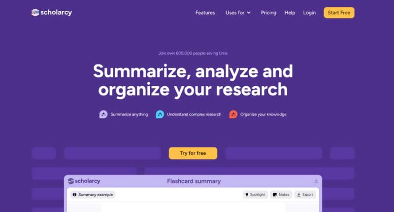 Scholarcy is a web-based summarization tool that evaluates and determines the significance of diverse document types, such as books, articles, reports, and chapters, with efficiency.