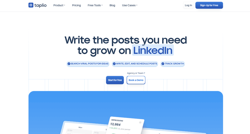 Taplio is designed to help users create highly relevant and engaging content at scale for LinkedIn. With detailed analytics, it empowers professionals to grow their personal brand effectively.