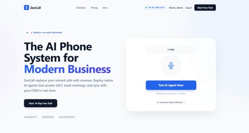 ZenCall replaces your missed calls with revenue. Deploy native AI agents that answer 24/7, book meetings, and sync with your CRM in real-time.